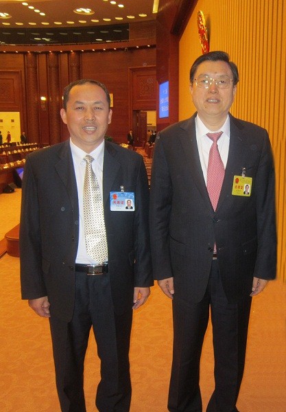 在25日上午全體會(huì)議閉幕后,張德江委員長(zhǎng)親切接見(jiàn)了周振波。委員長(zhǎng)說(shuō):“小周,你是上海來(lái)的,我認(rèn)識(shí)你了?!庇谑歉吲d地與周振波合影留念。