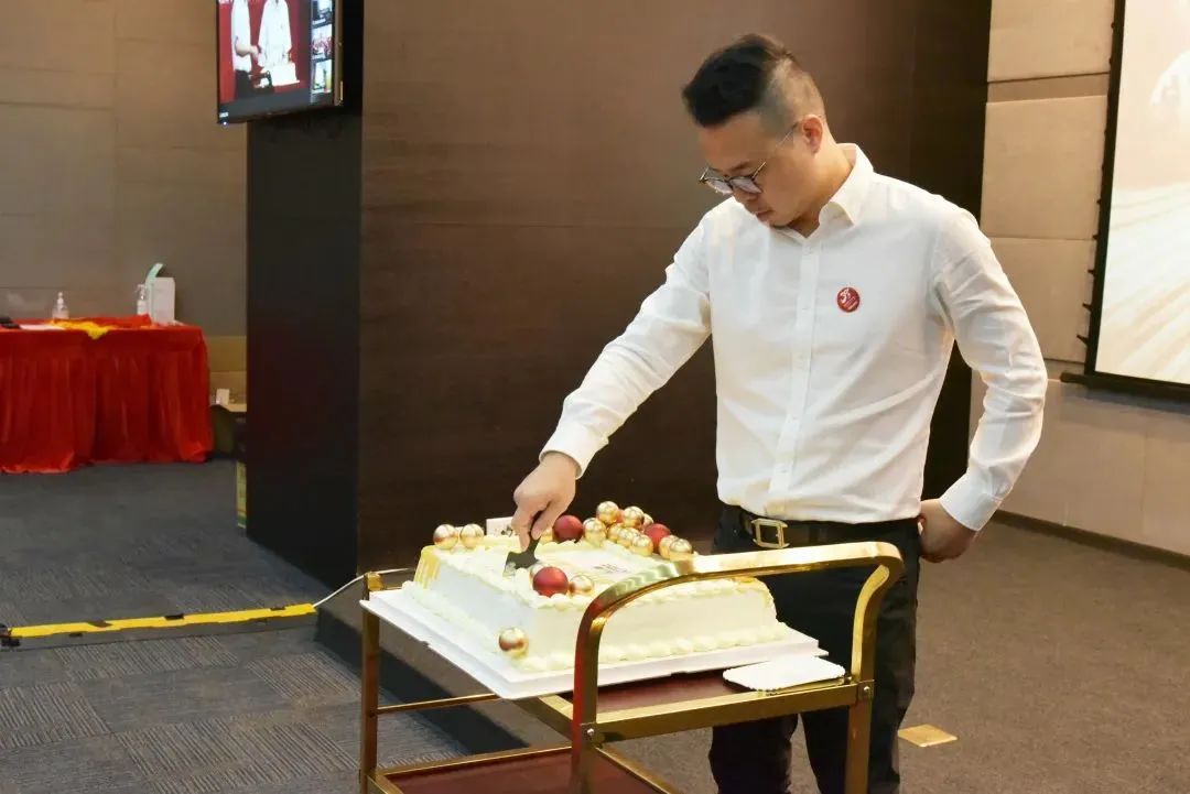 在胡成國的帶領(lǐng)下,各會(huì)場(chǎng)同時(shí)切開生日蛋糕,共同歡慶德力西生日快樂。
